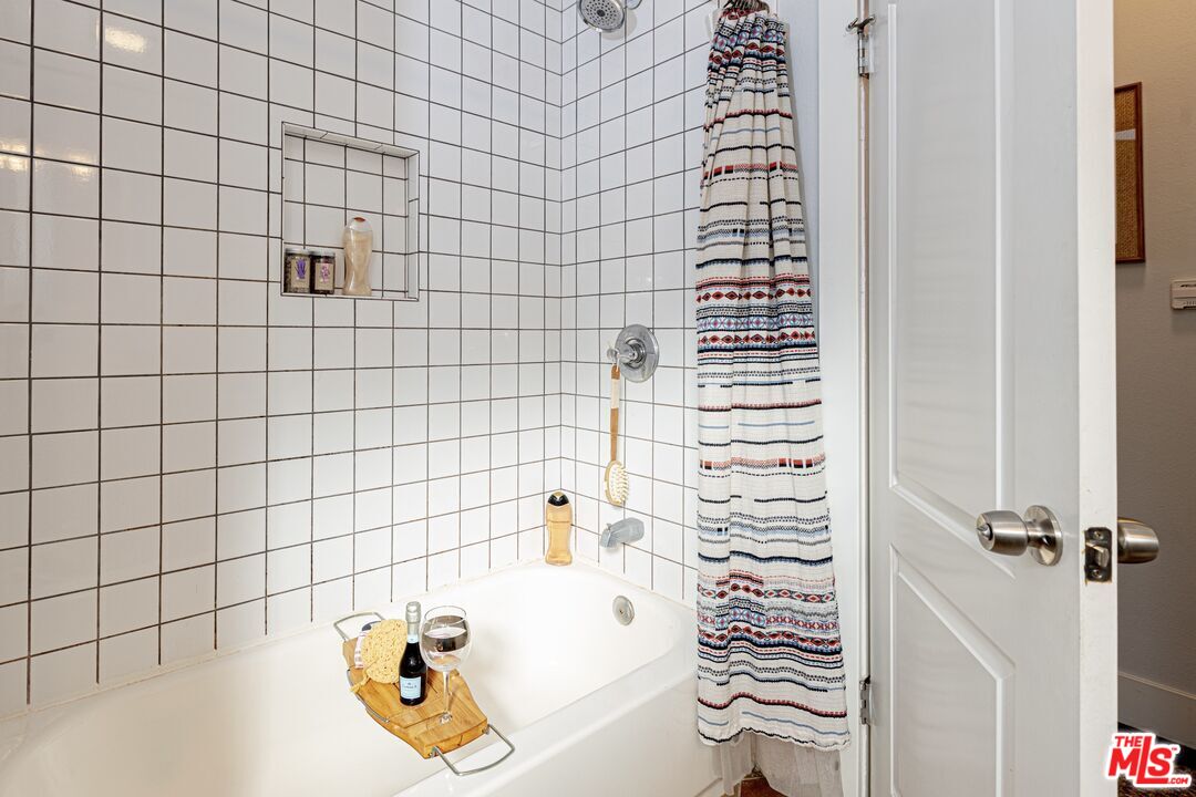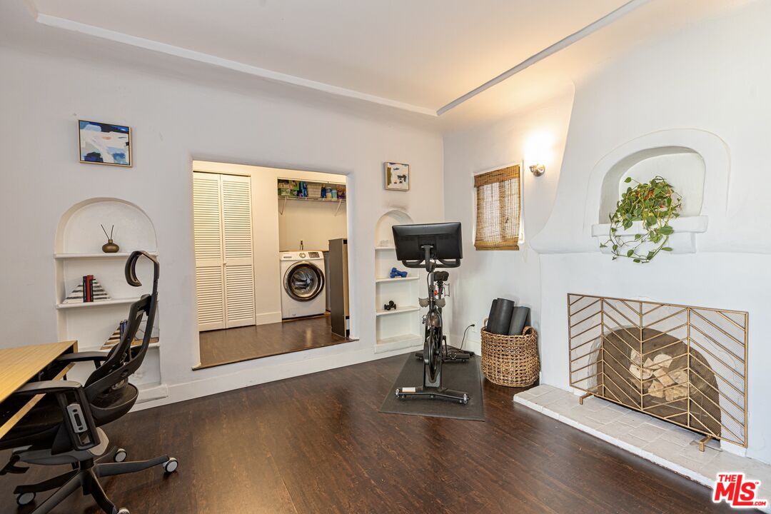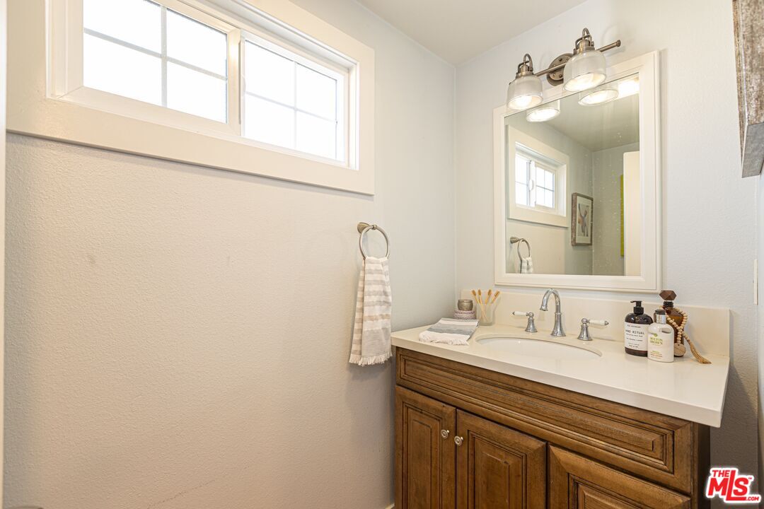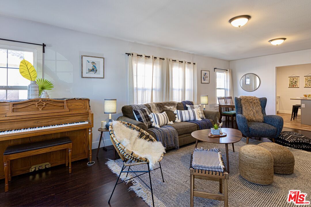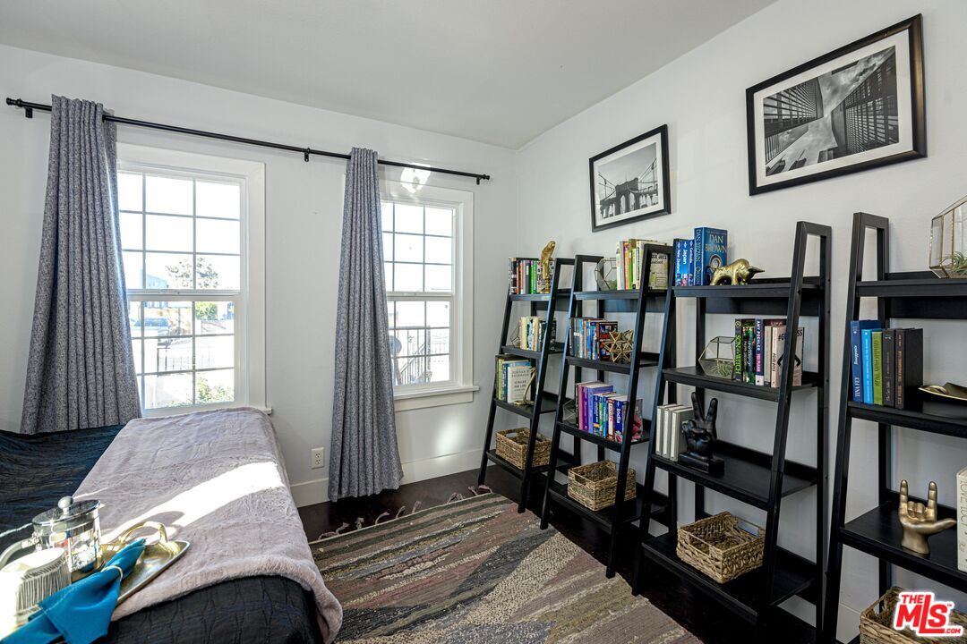 This 1920s Spanish-inspired cottage is situated in the Gramercy Park neighborhood in the city of Los Angeles. As you make your way through the front yard lined with arched wrought iron fencing, you are immediately welcomed by the idyllic arched entryway and eye-catching brickwork surrounding the front door. The covered porch enclosed with railing makes for enhanced privacy. Upon entering and peering inside, immediately the charm and warmth of this home become strikingly clear as the large windows in the living and dining areas create a naturally illuminating, airy environment. The light, bright, and rustic modern kitchen features white shaker cabinetry, a butcher block island with bar seating and additional cabinets, quartz countertops, subway tile backsplash, recessed lighting, direct access to the backyard, and stainless steel appliances that include a gas range/oven, refrigerator, dishwasher, microwave, and double-bowl sink with faucet sprayer. Off the kitchen is the large master bedroom that boasts an ensuite half bathroom, adobe-style fireplace, wall sconces, and direct access to the back yard for easy indoor-outdoor living. Off the living room is a hallway that leads to the full bathroom and two bedrooms, both with closets and extra storage space. This home maintains classical, historical details with dark laminate wood and terracotta tile flooring throughout, and traditional recessed wall niches for decorative displaying. The private, spacious back yard is ideal for entertaining and hosting any social or intimate occasion or gathering by the fire pit. The gated driveway extends to the side yard and leads to the detached garage, perfect for RV or tandem parking. And, the drought-friendly landscaping makes this home well-suited for the California weather. Centrally located near the city's biggest sporting and concert venues; SoFi Stadium, The Forum, YouTube Theater, and the anticipated Intuit Dome.